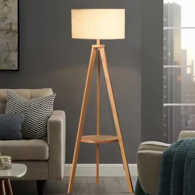 Scandinavian solid wood floor lamp simple modern bedroom vertical tripod steady living room decorative reading floor lamp